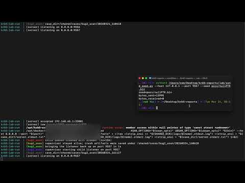 The following video demonstrates the issues in a Dockerized krb5 lab environment compiled with AddressSanitizer (ASan), showing memory-safety failures triggered over the network:
